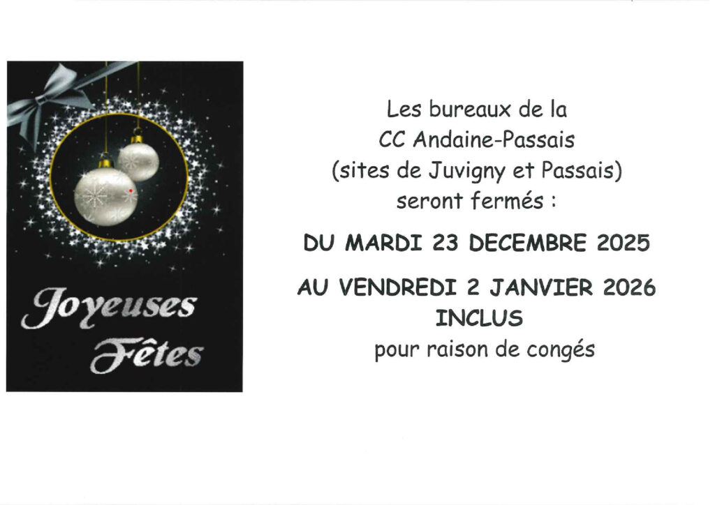 Fermeture hivernale des bureaux CC Andaine-Passais (site de Juvigny et Passais)