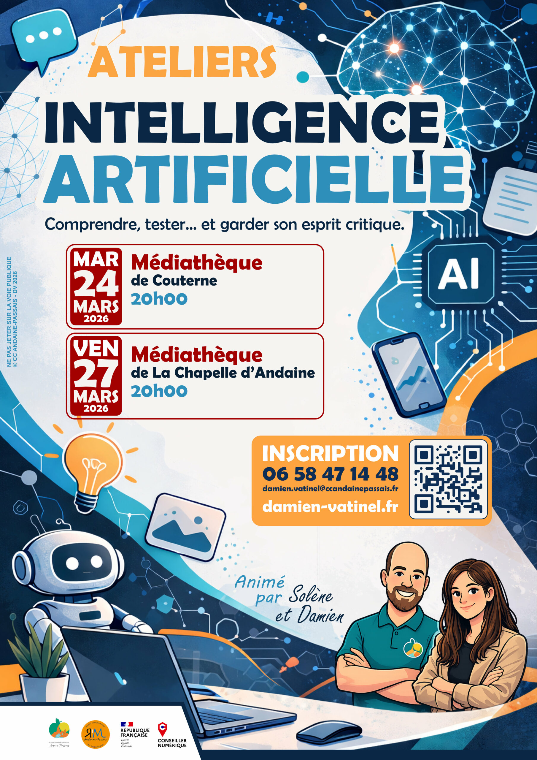 La médiathèque vous propose un atelier de découverte accessible à tous pour comprendre ce qu’est l’intelligence artificielle, comment elle est utilisée aujourd’hui et quels sont ses enjeux.